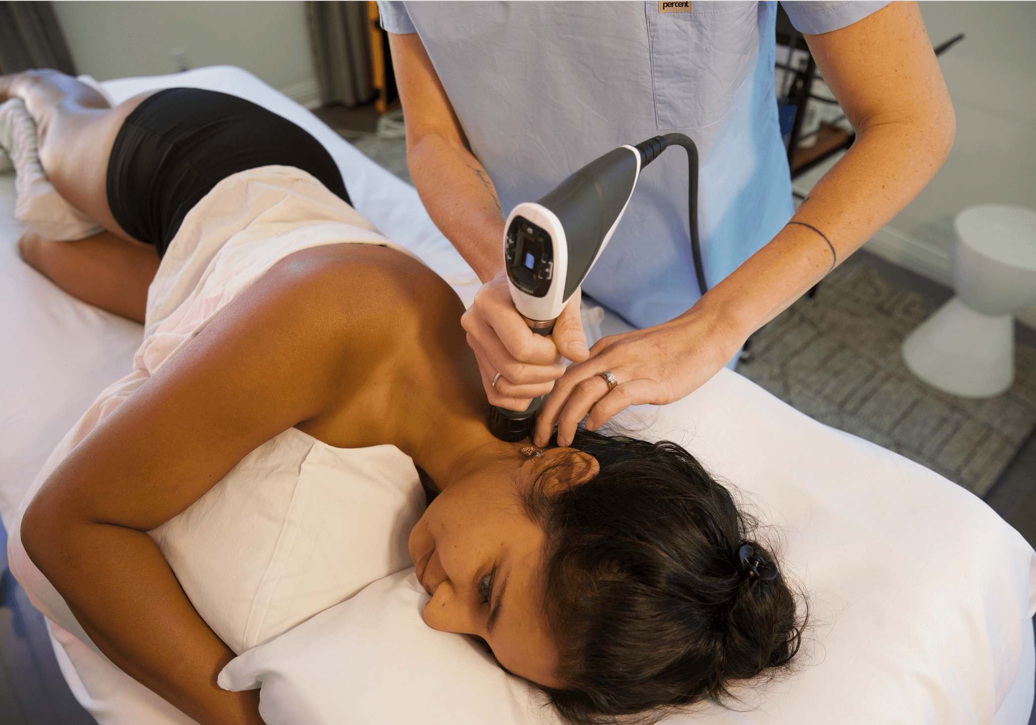 For optimal rejuvenation results, it’s important to understand that working on the face alone is not enough. The neck plays a vital role in skin health and renewal because it houses many of the body’s key lymphatic pathways. These lymph channels are responsible for helping the body remove cellular waste, excess fluid, and toxins — an essential process sometimes described as how the body “takes out the trash.” When lymphatic flow becomes sluggish, the skin can appear dull, congested, or puffy. By incorporating treatment to the neck area, Acoustic Wave Therapy helps open and stimulate these natural drainage pathways, supporting the body’s ability to clear waste and deliver fresh nutrients to the tissues. Treating both the face and neck ensures a more complete and effective rejuvenation. Acoustic Wave Therapy enhances circulation and lymphatic activity, promoting a clearer, firmer, and more radiant complexion. This whole-area approach supports the body’s natural balance, allowing the skin to look healthier and more refreshed from the inside out.