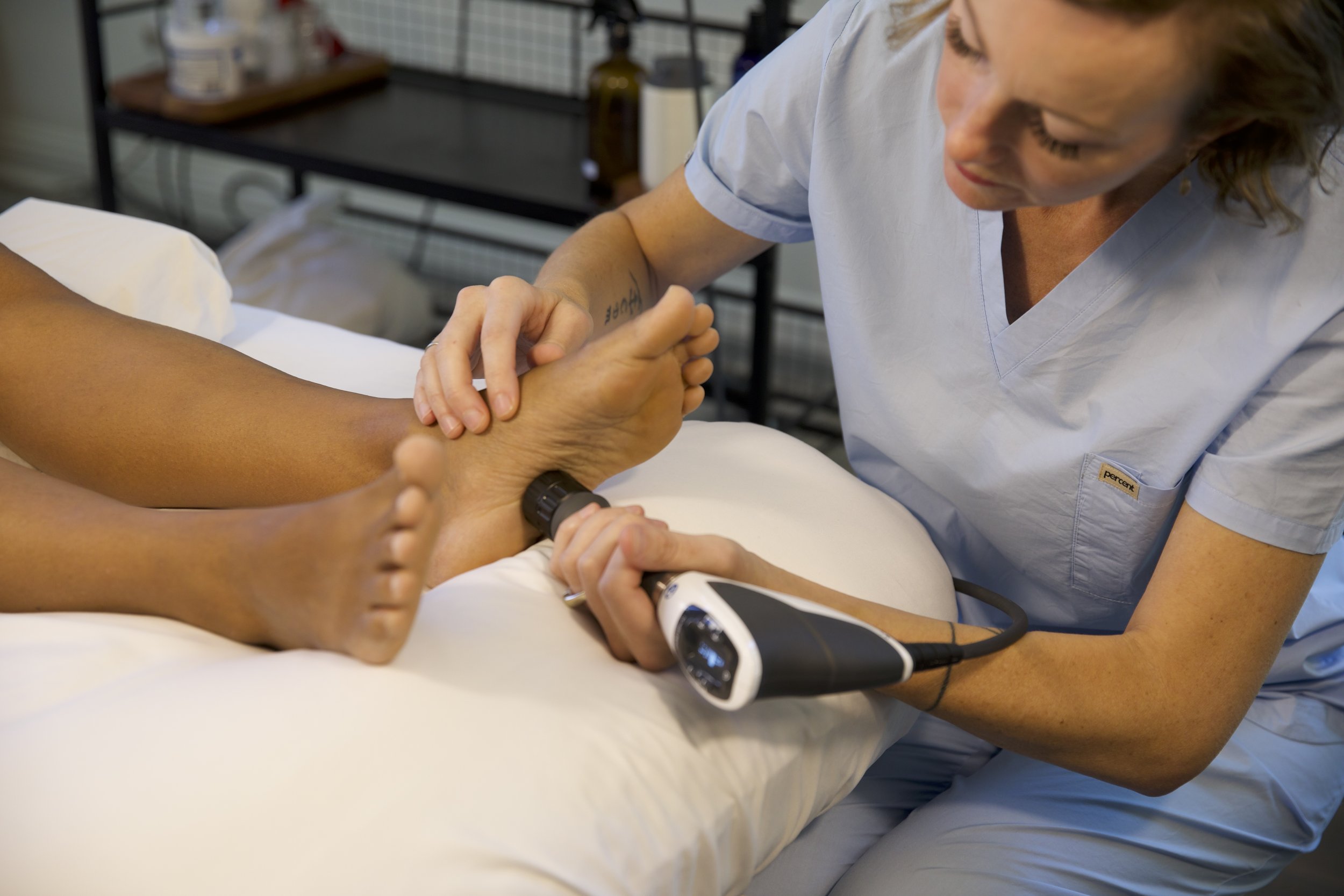 Ankle Pain can be discomfort, aching, or sharp sensation occurring in or around the ankle joint. It may present as sharp or stabbing pain during movement or weight-bearing activities. Dull ache, or throbbing pain at rest or activity. There may be swelling or stiffness, with restricted motion. Instability or “giving way” when walking or moving. CalfPain is discomfort or aching located in the back or front or side area between the knee and ankle. It can also continue up the chain of the leg or down into the foot. It can be a dull ache, or tightness especially after prolonged standing, walking, or exercise. It could also be sharp, stabbing, or cramping sensation during movement or even a burning throbbing or heaviness in the area. In some cases, calf pain may indicate more serious concerns such as a muscle tear. Achilles tendonopathy often causes pain and stiffness along the back of the ankle or lower calf, particularly where the Achilles tendon connects to the heel. You may feel a dull ache, burning sensation, or sharp discomfort, especially during or after activities like walking, running, or climbing stairs. The pain can be more pronounced in the morning or after periods of rest, and you might notice tenderness when touching the tendon or mild swelling in the area.